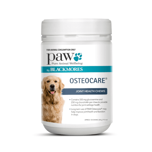 This is a PAW Osteocare 500g 100 Chews Joint Health Chews for Dogs Blackmores. Each PAW Osteocare chew contains: 500 mg Glucosamine Sulfate: to pro...