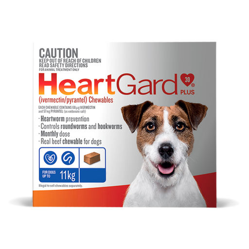 Heartgard Plus Heartworm chewables is a monthly meaty chew used for the prevention of heartworm disease and for the control of roundworms and hookw...